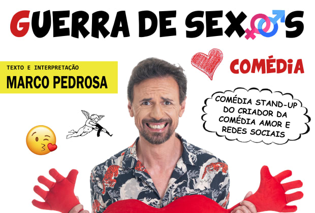 Get ready to laugh non-stop with "GUERRA DE SEXOS", the new stand-up comedy by the hilarious Marco Pedrosa. This current comedy about love relationships will make you laugh and reflect on the typical mistakes we make when falling in love, the ingredients of eternal love, and the best (or worst) couple combinations! Discover the hilarious differences between men and women, the whirlwind of emotions when ending a relationship, and the pearls of a resentful ex-partner. All this and much more at the Auditorium of Casa de Desporto do IPDJ in Porto. Don't miss this unique experience that promises to be unforgettable! Buy your tickets now for GUERRA DE SEXOS!
