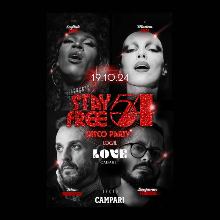 StayFree54 celebra el legendario Studio 54, recuperando el glamour, la libertad y la música disco que marcaron las noches de los años 70. La fiesta tiene lugar en el icónico Love Cabaret de São Paulo, con actuaciones especiales de la cantante Leyllah Diva y la DJ Marina Dias, en un Disco Set especial, así como de los DJs residentes Benjamin Ferreira y Mau Medeiros. No esperes más: ¡compra ahora tus boletos paraLove Cabareten São Paulo!