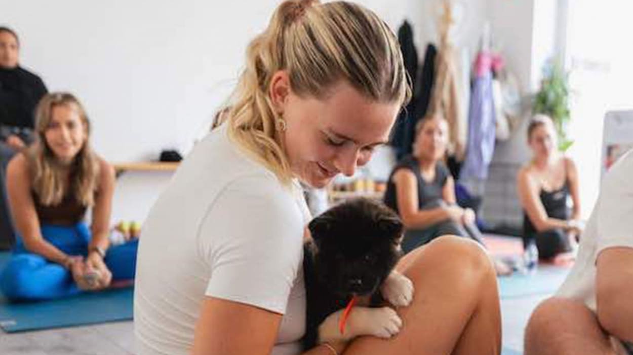 ¡🐾 Sumérgete en una experiencia lúdica y relajante en Puppy Cuddles, Yoga & Playtime! 🧘♀️