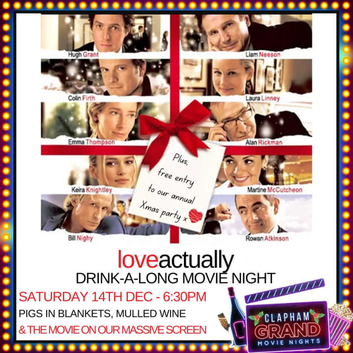 🎬 Join us for our legendary Love Actually Movie Nights! We’ll bring back the world-famous ‘Ant or Dec’ competition, a prosecco-fueled drink-along, prizes for the best fancy dress, and a cheeky mini Christmas disco. Plus, get ready for countless crowdsurfing Hugh Grant cardboard cutouts and all the festive fun you can handle!
