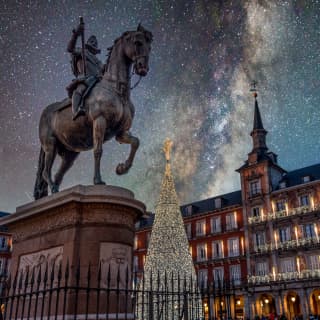 - Mercado Navideño en Plaza Mayor. Visitaremos el mercado navideño más emblemático de Madrid. Aquí disfrutaremos de la espectacular iluminación y descubriremos la historia de los belenes y cómo ha evolucionado esta tradición.