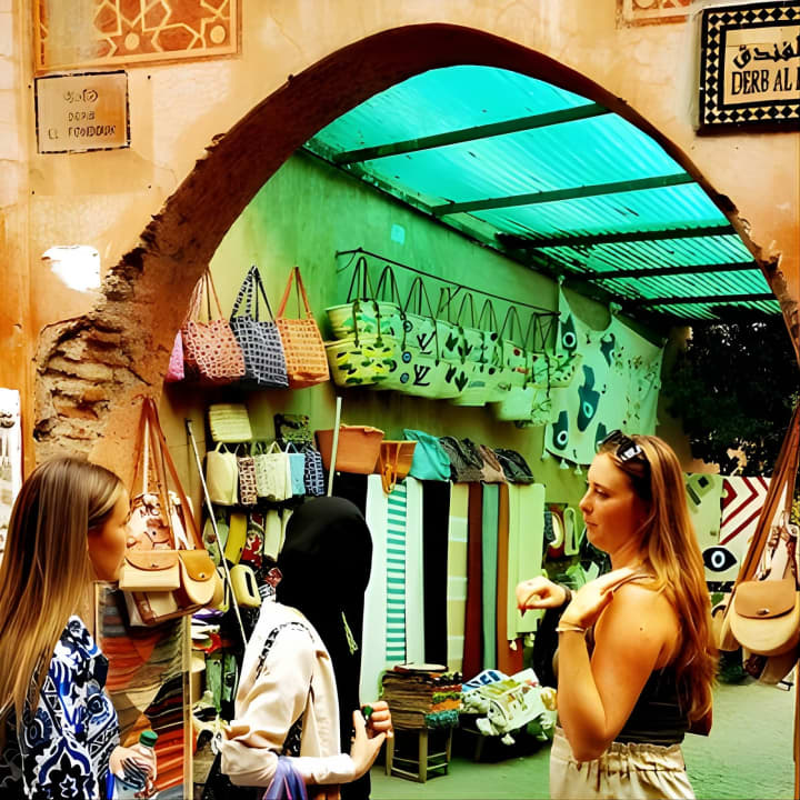 🛍️ Plonge dans les souks animés et observe les artisans qui fabriquent des produits marocains exquis dans les ateliers locaux.