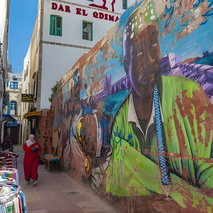 🌊 Explore the stunning ocher-colored walls and vibrant Moulay El Hassan square in Essaouira.