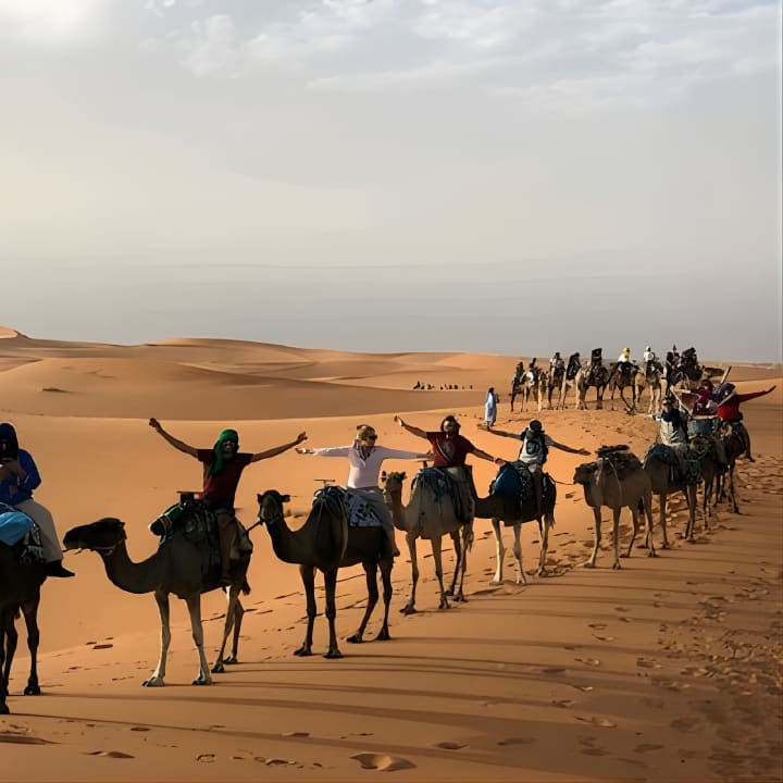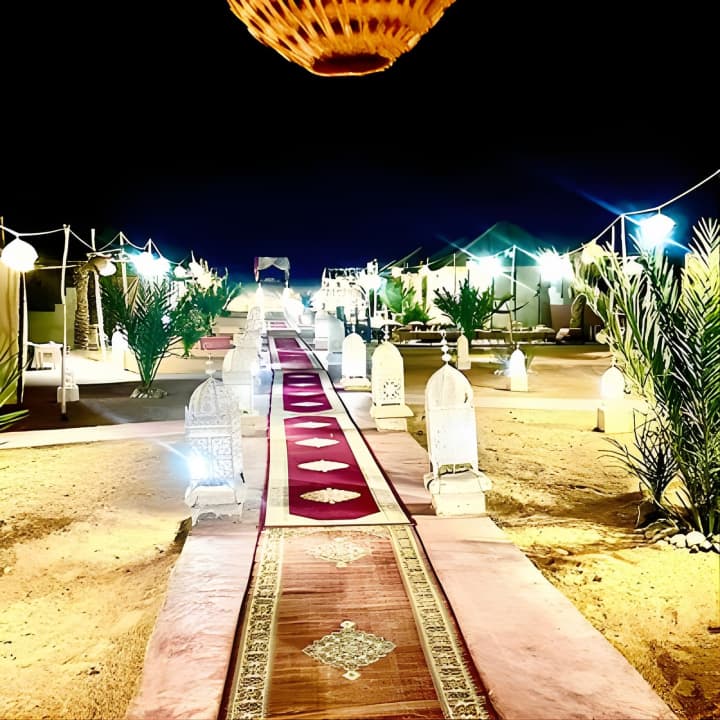 Plonge au cœur du désert de Merzouga lors d'une inoubliable randonnée à dos de chameau d'une nuit ! Journey à travers les envoûtantes dunes de l'Erg Chebbi, comme le font les Bédouins depuis des siècles. Au coucher du soleil, régale-toi d'un délicieux dîner au camp et groove au rythme des tambours berbères. Dors sous une couverture d'étoiles avant de retourner à Merzouga à dos de chameau. Prends tes billets pour la randonnée chamelière de nuit dans le désert de Merzouga/ Erg Chebbi !