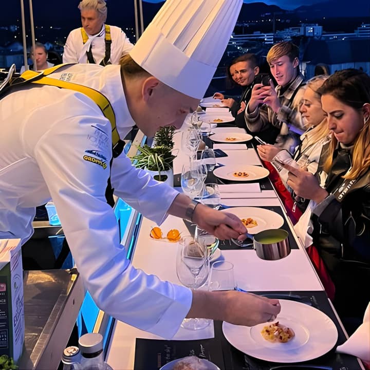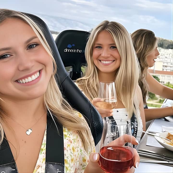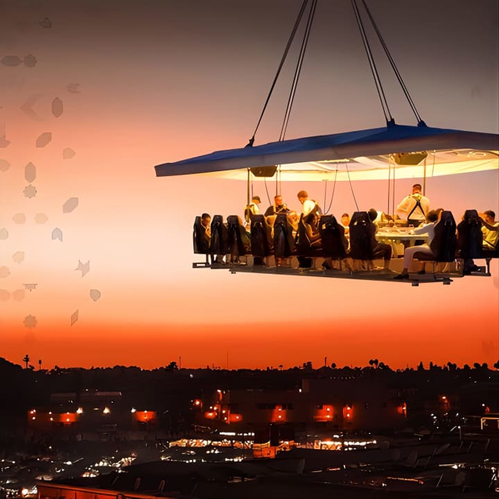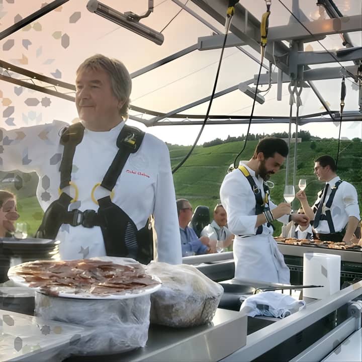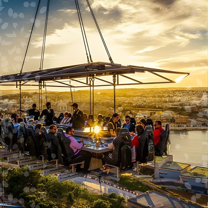 🍽️ Enjoy a gourmet 3-course meal suspended in the sky.