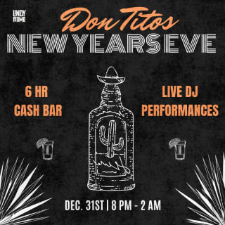 Ready to ring in the New Year at Don Tito's? Come join the rooftop cantina for a fun-filled night with great tunes, amazing food, and all the bubbles you need to start 2025 right! Dance to the hottest beats with our live DJ, catch up with friends, and countdown to midnight with a toast you won't forget. Want to make it extra special? Book a VIP package for reserved seating and bottle service. Don Tito's is THE place to be for NYE, so get ready to party!