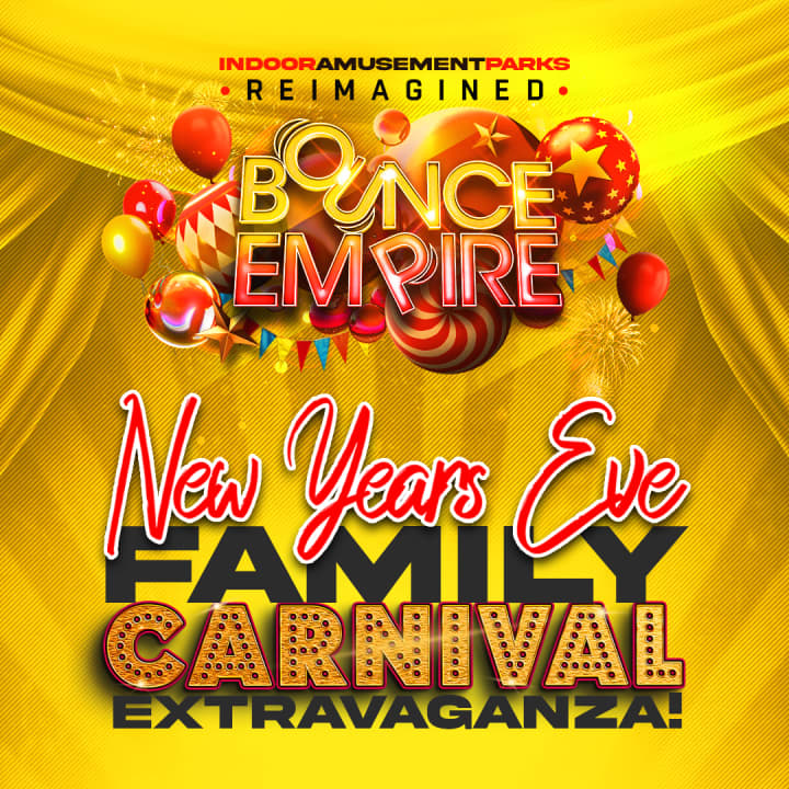 Bounce Empire - New Year's Eve Family Carnival Extravaganza ⭐ Ring in the New Year at Colorado's only true family-friendly NYE Carnival Extravaganza at Bounce Empire, the world’s largest inflatable amusement park! Enjoy over 50 thrilling attractions, live DJ performances, multiple balloon drops at 10 PM and midnight, and meet your favorite costume characters. With free parking, farm-fresh dining, and 21+ VIP lounge options, there’s fun for everyone in 50,000 sq. ft. of excitement!