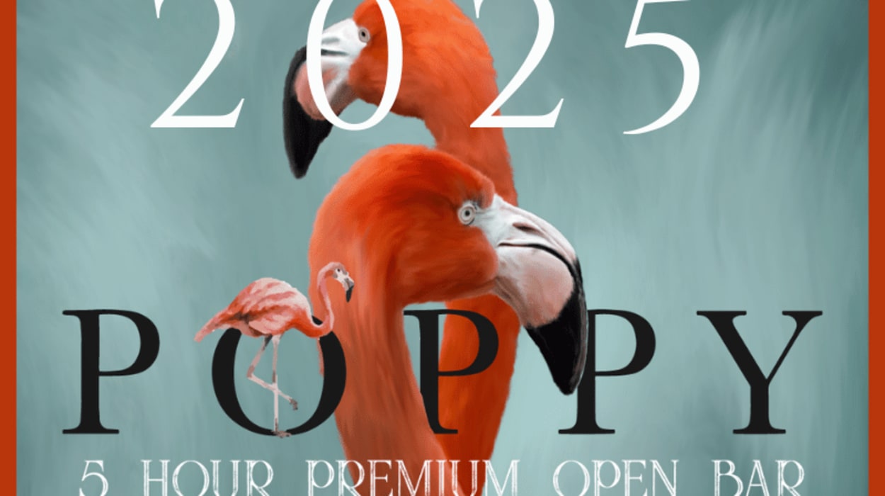 Step into a magical New Year’s Eve at Poppy, the legendary West Hollywood nightlife destination known for its fantastical décor and A-list clientele. From the lush atrium with hanging lanterns and twinkling crystals to the marble-checkered floors and embroidered chaises, Poppy sets the stage for a truly enchanting evening. Your night begins with a five-hour premium open bar, offering signature cocktails crafted by LA’s finest mixologists. As the evening unfolds, a live DJ will keep the energy high with a curated setlist, leading up to a crowd-wide countdown at midnight. Raise a complimentary glass of champagne as you welcome 2025 with style and flair.