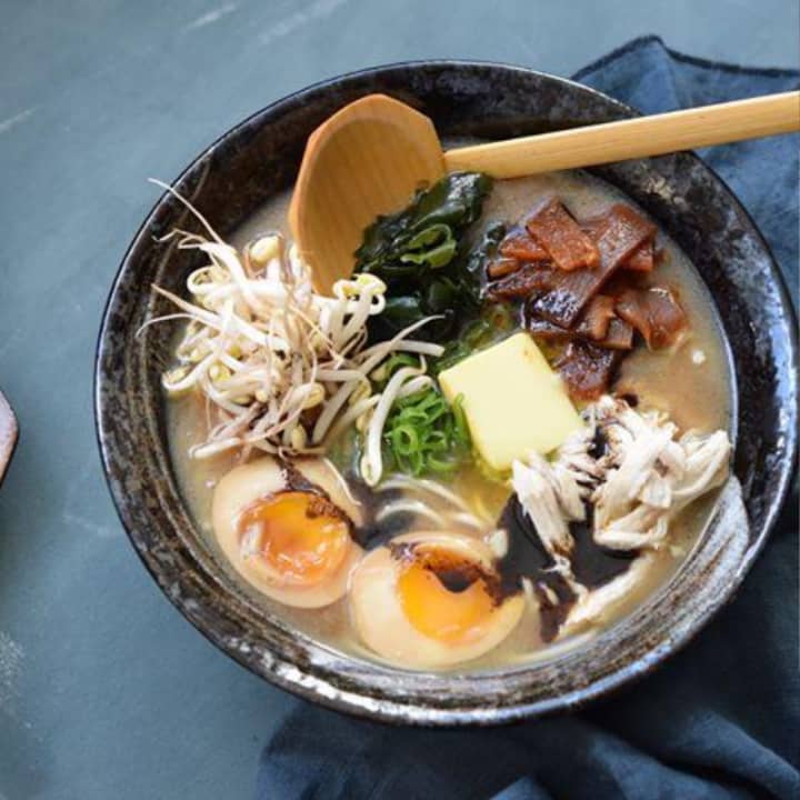 🥢 Personaliza tu tazón de ramen con guarniciones tradicionales y toppings deliciosos, incluyendo el cerdo shoyu braseado y marinado, especialidad del chef.