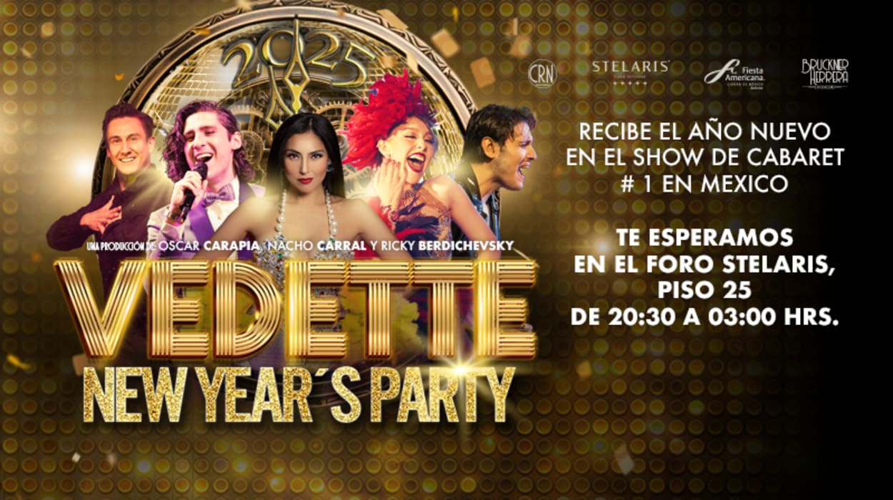 La noche del 31 de diciembre es ideal para compartir y divertirse. Celebremos juntos la partida del 2024 con el show de Cabaret más exitoso de la Ciudad de México. Un recorrido por canciones que inevitablemente te harán sonreír, bailar y cantar con nosotros. Recibamos también al 2025 con romance, bohemia y nostalgia, para terminar de agradecer al año que se va y disfrutar al máximo la llegada del nuevo. ¡Vive, canta, baila y celebra con Vedette la fiesta de la vida entre amigos y familiares!