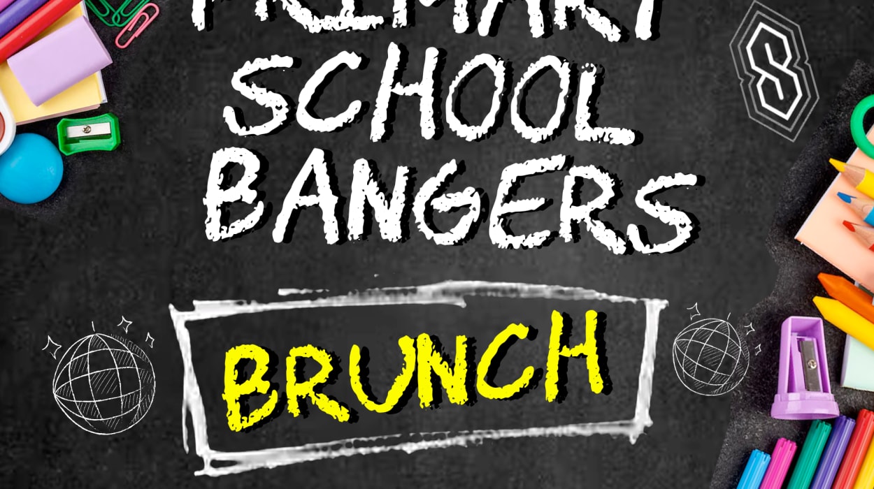 ⭐️ Relive the best moments of your childhood! Get ready for an afternoon packed with nostalgic school assembly sing-alongs, classic school disco hits, bottomless drinks, and a delicious brunch that will take you right back
