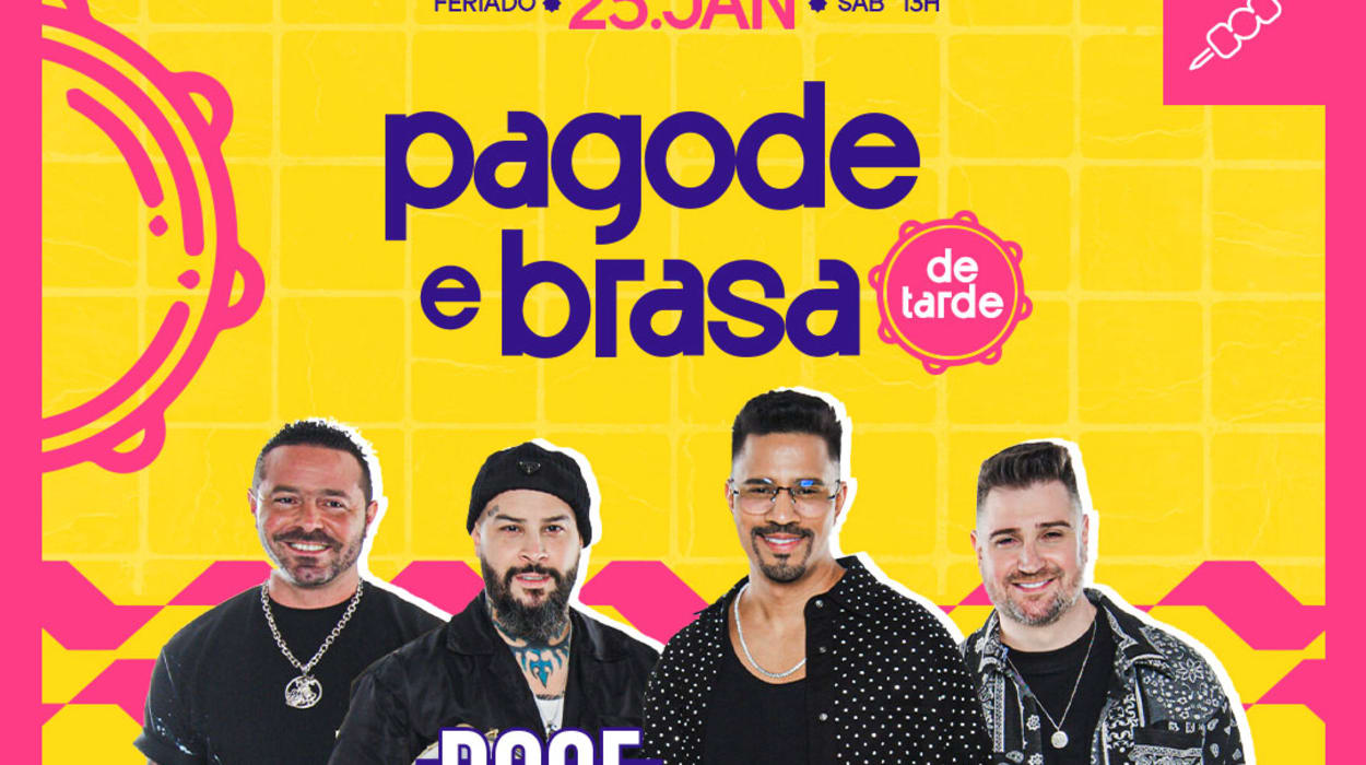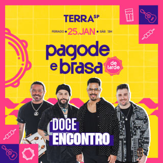 Dia 25 de janeiro, o Terra SP vira o point do feriado com Doce Encontro, espetinhos na brasa e aquela vibe de tardezinha que todo pagodeiro ama. Já imagina? Pagodão rolando, amigos, espetinho, cerveja gelada e aquele refrão de "Alucinado” pra todo mundo cantar junto!