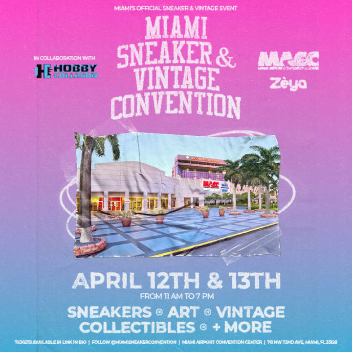 ⭐ The Miami Sneaker & Vintage Convention is back on April 12 and 13! Explore a wide range of sneakers, collectibles, and vintage items while buying, selling, or trading with hundreds of vendors. Don’t miss it!