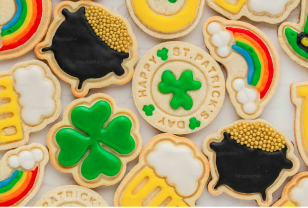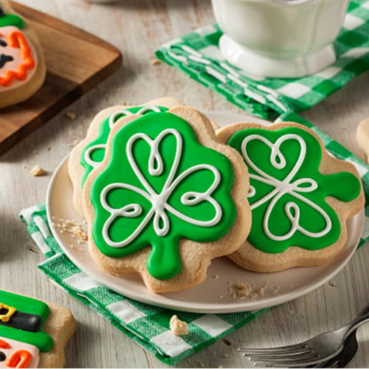 🍀 Decorate six pre-baked cookies, including clovers, pots of gold, and rainbows