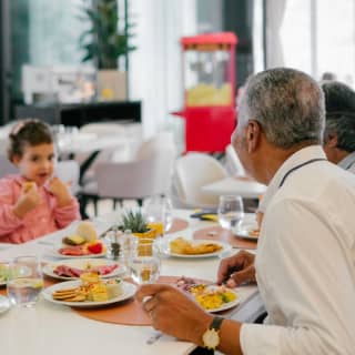 A manhã começa ao ar livre com atividades dinâmicas e jogos em equipa, onde pais e crianças podem divertir-se juntos através de desafios cooperativos e atividades físicas adaptadas a diferentes idades. Depois, reúna a família no Restaurante Glass Terrace para um delicioso almoço, com uma seleção variada de sabores. Durante o almoço, continuam os momentos de partilha com oficinas criativas, jogos de mesa, photobooth e um mural de mensagens, criando um ambiente descontraído e especial para toda a família.