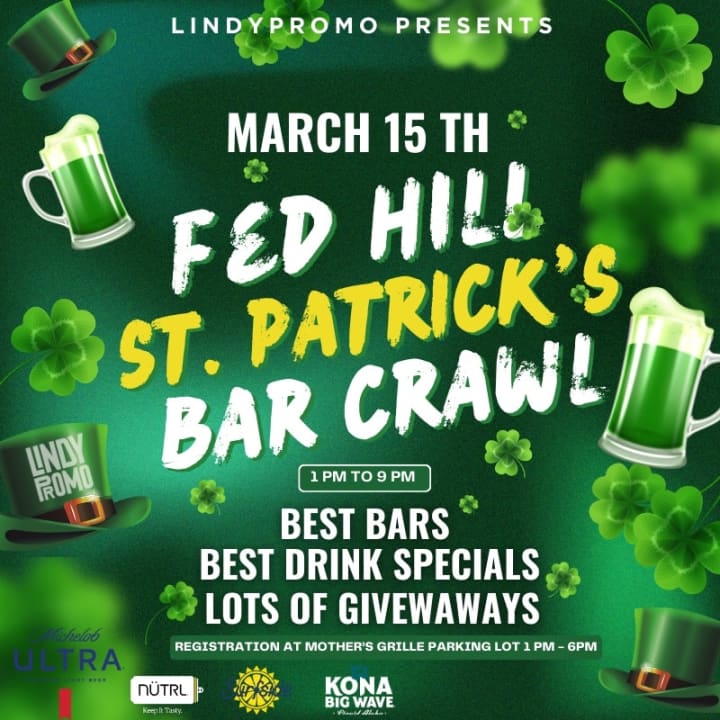 It’s time to paint the town green at Fed Hill’s St. Patrick’s Bar Crawl! This legendary event will have you dancing, drinking, and celebrating all day long as you move through Federal Hill’s top bars, all offering exclusive drink specials and festive St. Paddy’s vibes. Show off your best green attire for the costume contest and take your chance at winning prizes! Whether you're a seasoned bar crawler or new to the scene, this is one St. Patrick’s celebration you won’t want to miss. Gather your crew, grab your tickets, and get ready for an unforgettable day of Irish-inspired fun!