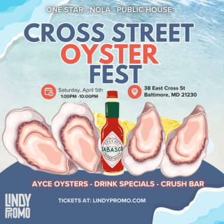 Join us at Cross Street Oysterfest for an unforgettable celebration of oysters and good times! Hosted by One Star, NOLA, and Public House, this festival promises a feast for your taste buds. Dive into an array of delicious oysters while sipping on your favorite drinks and enjoying the lively atmosphere. With live music setting the perfect backdrop, it's a day of fun and flavor that you won't want to miss!