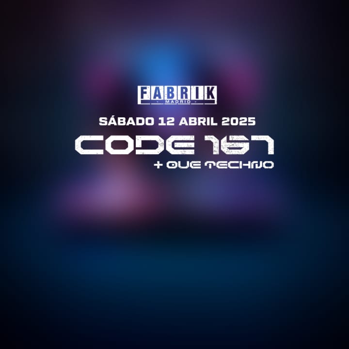 El techno vuelve a casa con CODE 167 este 12 de abril en FABRIK. Prepárate para una noche legendaria con un arsenal de artistas brutales, cuatro áreas en plena ebullición y más de ocho horas de música con el mejor sonido underground del planeta. Enrico Sangiuliano, Jeff Mills, 999999999, FJAAK y muchos más estarán listos para hacerte vibrar en esta edición épica. ¡No te quedes sin tu entrada!