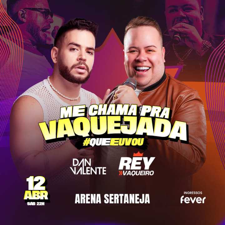 ¡Ahora te toca a ti! Rey Vaqueiro y Dan Valente llegan con los éxitos que todos cantan, como "Bem-Vinda ao Meu Mundo", "Me Chama Eu Vou", "Deixo Nada", "Bateria Acabou" y muchos más. ¡Un show para cantar a todo pulmón de principio a fin! 🎶🔥