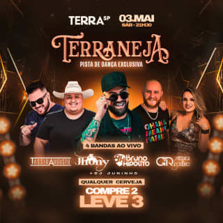 Show Terraneja com Bruno Hipólito, Jhony Quadros, Gessica e Rodrigo e Tássio Augusto no Terra SP ⭐ A balada sertaneja mais querida está confirmada no Terra SP! O Terraneja traz 4 Bandas AO VIVO na melhor balada sertaneja do Terra SP!