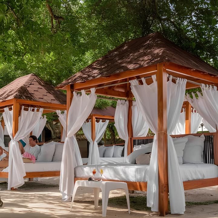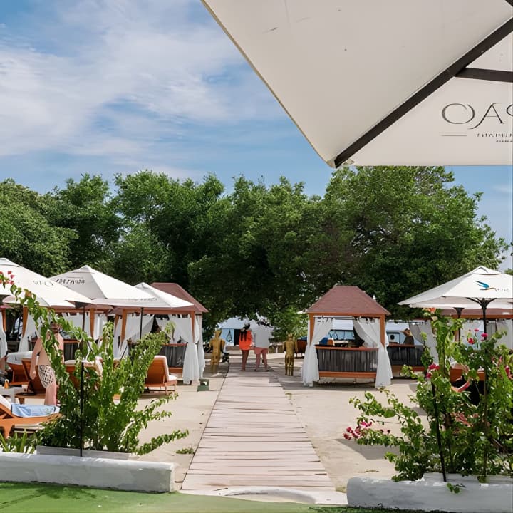 🌴 Disfruta de playas exclusivas y una piscina de agua dulce en una atmósfera surrealista.
