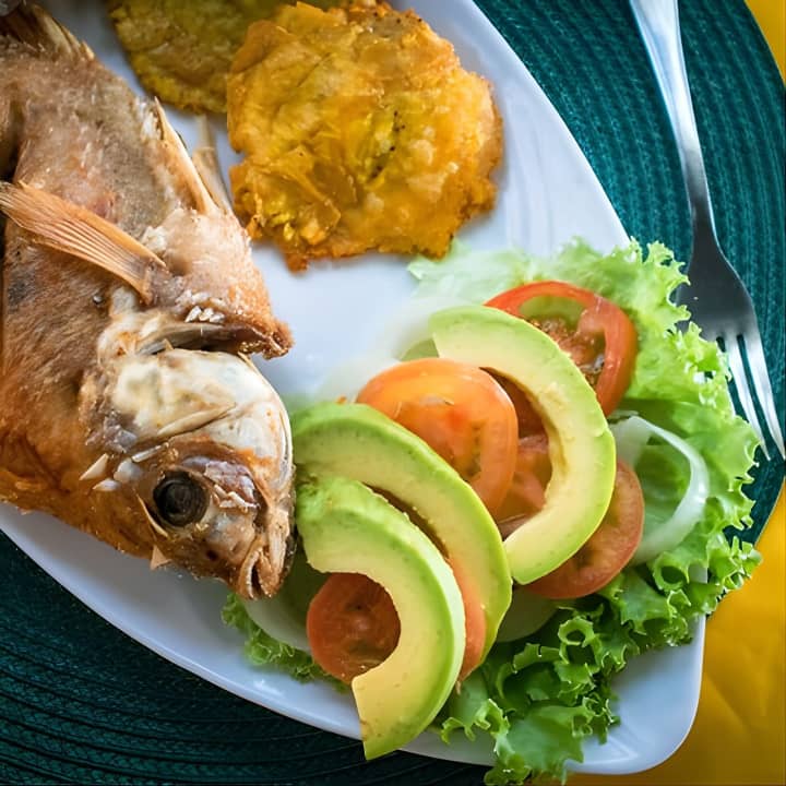 ✔️ Plato típico costero (pescado, pollo o pechuga de cerdo) con arroz con coco, ensalada, patacón y refresco o agua.