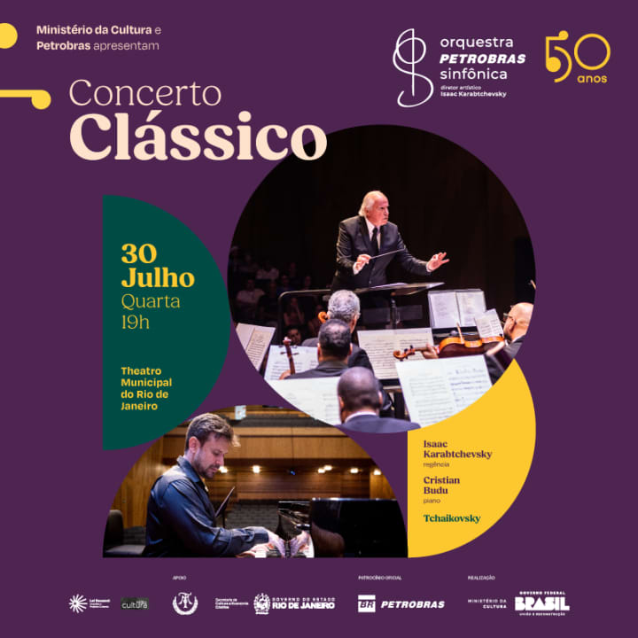 No dia 30 de julho, quarta, às 19h, a Petrobras Sinfônica, sob a direção artística de Isaac Karabtchevsky, recebe o pianista Cristian Budu para um concerto especial. No programa, duas das mais expressivas obras de Tchaikovsky: o emocionante “Concerto para piano e orquestra nº 1”, com solos de Budu, e a imponente “Sinfonia nº 5 em mi menor”. Uma oportunidade única para vivenciar a força e a beleza da música sinfônica ao vivo.