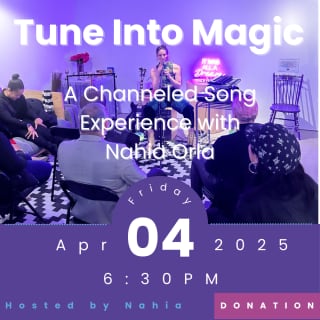 Step into a world where words turn into music at "Tune Into Magic" with Nahia Orla! This intimate channeled song experience invites you to contribute your spring intentions or a simple word, and watch it come alive in a soulful, unique musical creation. With the theme of Spring Renewal & Abundance, you’ll experience a deeply grounding and inspiring evening of connection through music.
