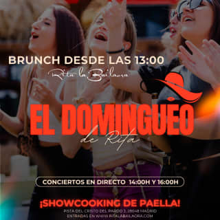 Disfruta del mejor tardeo en Rita la Bailaora, donde la buena música, la gastronomía y el ambiente vibrante se unen para ofrecerte una experiencia única. Con conciertos en directo, DJs, y un showcooking de paella, será el plan perfecto para relajarte y pasar un buen rato. Además, con diferentes terrazas, foodtrucks y servicio VIP, podrás disfrutar de un día inolvidable rodeado de amigos. ¡El verano de Madrid te espera en este Domingueo exclusivo!