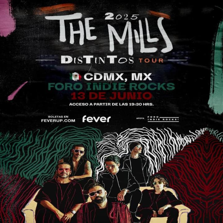 The Mills is a Colombian Latin rock band that has managed to win fans to their musical repertoire and style due to their musical influences, adding their innovative ability to mix rhythms, sounds and new trends to their album material. On this occasion, will perform at the Sala (B) of Foro Indie Rocks!