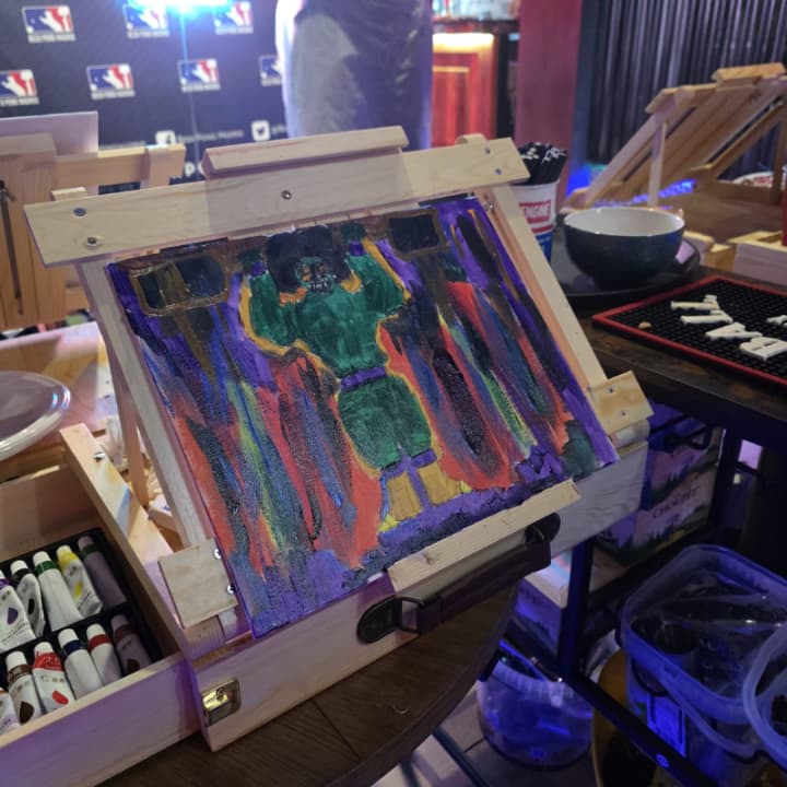 Glorieta MadridViens découvrir Pinta Luz Art & Wine, Atelier de peinture au néon réservé aux adultes