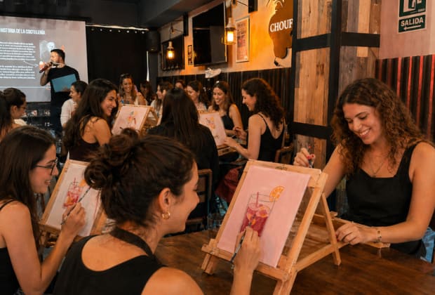 ⭐ détends-toi et éveilles ta créativité avec paint & cocktails à madrid ! enjoys une expérience unique où tu peins à ton rythme tout en savourant 3 cocktails.
