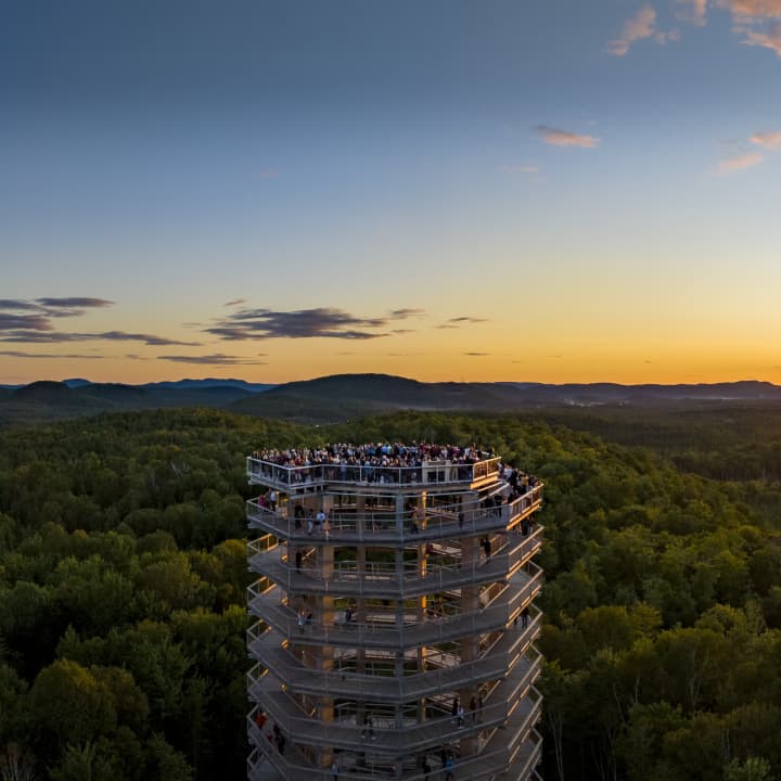 Élève tes sens au Sentier des cimes Laurentides, un parcours spectaculaire de 1 350 mètres à la cime des arbres, avec une tour panoramique de 40 mètres. Admire des vues imprenables sur les montagnes l...