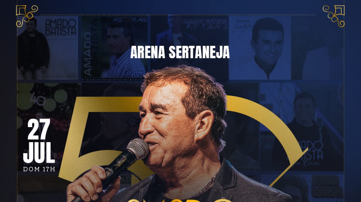 Show do Amado Batista 50 Anos no Arena Sertaneja Um fim de tarde para celebrar a música, a família e as memórias mais queridas.