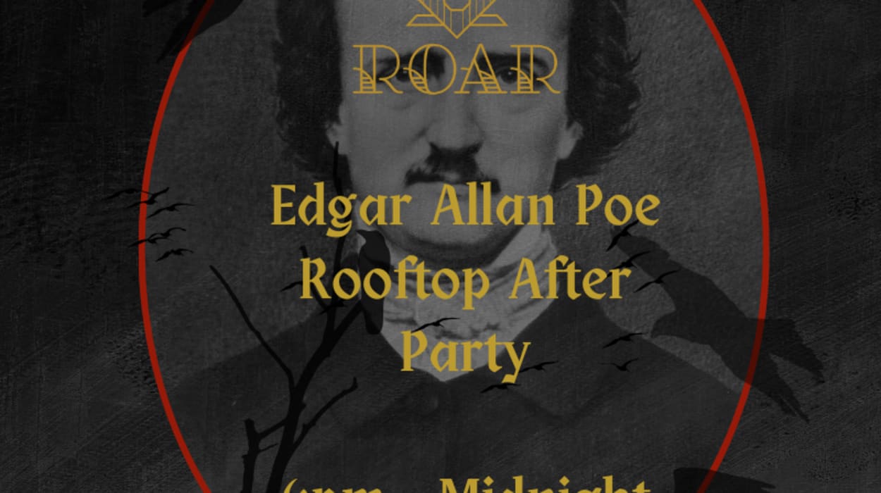 This is no ordinary after party — it is a descent into the sublime, the surreal, and the poetic. Join us for the Edgar Allan Poe Rooftop After Party at Roar, where mystery and imagination take over the night. Dance beneath the stars, soak in moody rooftop views, and lose yourself in a one-of-a-kind celebration that blurs the line between reality and the world of Poe. Will you dare to join us... once upon a rooftop dreary?