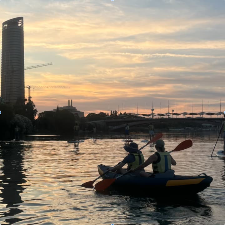 🌇 Un recorrido en kayak al atardecer con vistas impresionantes de Sevilla.
