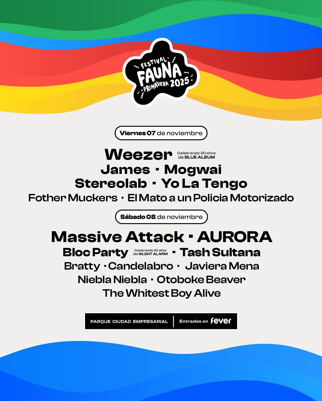 🎶 Line-up internacional: cuenta con artistas como Weezer, Massive Attack, AURORA, Bloc Party, James, Mogwai, Stereolab, Tash Sultana, El Mato a un Policia Motorizado, The Whitest Boy Alive, Yo La Tengo ¡y muchos más!