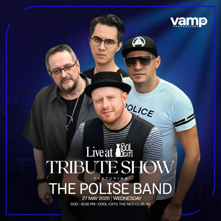 Catch The Polise Band live! Singapore’s tribute to Sting and The Police, led by Kevin Bennett Jr with Pablo Calzado, Anson Fung, and Harley Warren, delivers tight grooves, iconic hits, and electrifying performance. Relive the classics and experience the legendary sounds live!