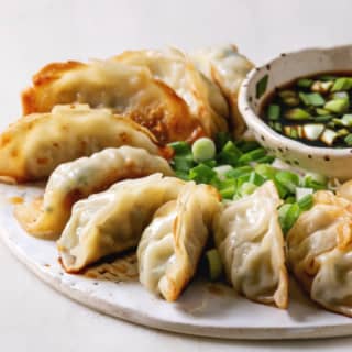 🥟 Master the art of crispy, golden Japanese gyoza with a lacy cornstarch lattice