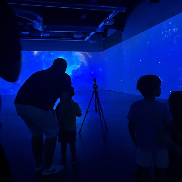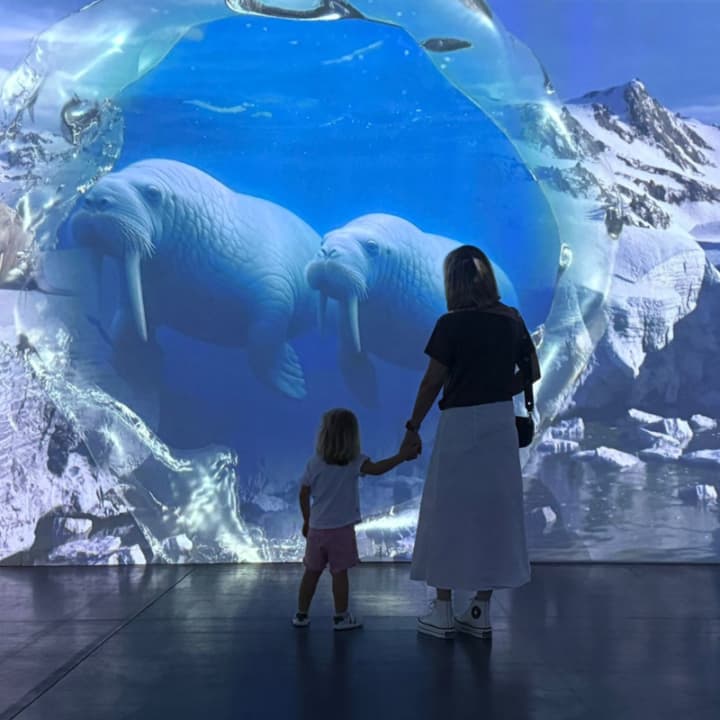 Limited seating. Ideal for families, school groups and explorers of all ages. An immersive and interactive experience for all ages, where you can dive among singing whales, great white sharks, traveling turtles and arctic narwhals, without getting wet.