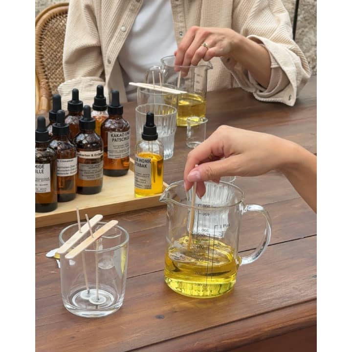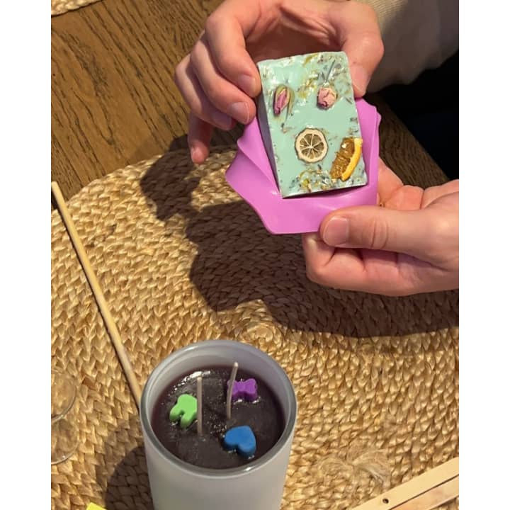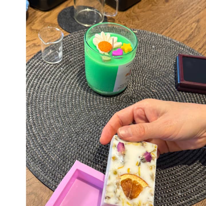 Tauche ein in die Welt der Düfte und Farben im Herzen von München! In diesem kreativen Workshop gestaltest du deine eigene 170g Duftkerze aus Sojawachs, die mit sicheren handgemachten Wachsfiguren wunderschön dekoriert wird. Du wirst auch zwei natürliche Seifen herstellen und diese mit echten, getrockneten Blumen zu kleinen Kunstwerken verwandeln. Ob alleine, mit Freunden oder als Teil eines unvergesslichen Firmenevents wir bieten die perfekte Atmosphäre. Sichere dir jetzt deine Tickets für die Kerze und Seife Workshop in München!