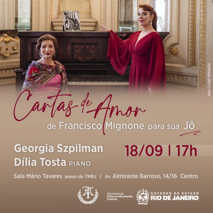 História de amor sempre nos encanta, e unir uma história real da paixão arrebatadora do compositor Francisco Mignone, famoso internacionalmente, pela pianista, Josephina Mignone, ou sua Jô como gostava de chama –lá, nos encanta e aguça nossa curiosidade. Assim a cantora Georgia Szpilman e a pianista Dília Tosta emolduram com a magia e riqueza da música do Mignone, as cartas trocadas entre o casal, a grandeza do amor e o homem romântico por trás da sua genialidade musical.