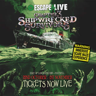 ā Step aboard Escape Alive: Chapter 3 - Shipwrecked Survivors, a terrifying Halloween scare maze on the infamous Duke of Lancaster ship in North Wales! Dare to relive the haunted decades of this ghostly vessel and experience horror like never before.