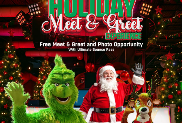 Santa, Grinch, & Rudolph Holiday Experience Bounce with the Grinch & Rudolph plus Meet Santa Photo Experience — Your Family-Friendly Santa Bonus Gift included with your Holiday Ultimate Bounce Pass ticket purchase.