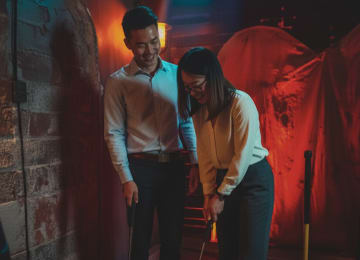 Kulnari Mystery Golf is an immersive, multi-sensory minigolf adventure right in the heart of Boat Quay! Journey through alleyways, teahouses, and crime scenes in this 18-hole course, uncovering hidden clues that bring you closer to solving the mystery of Kulnari. Refresh and recharge at the Ninth Hole Bar, serving themed cocktails and other drinks. After completing all 18 holes and solving the mystery, you can continue your evening with a Chef's Tasting Menu or Signature Chef’s Tasting Menu at Quay House, a heritage shophouse restaurant (select Minigolf + Dining tickets). Get your tickets for Kulnari Mystery Golf in Singapore today!