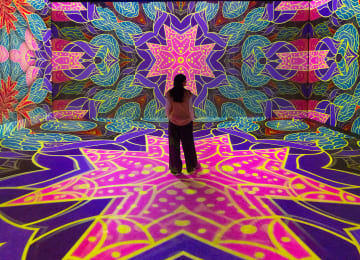 Aura Labs ist ein permanenter Ausstellungsraum für New Media Art, der immersive Kunst auf höchstem Niveau erlebbar macht. Im Zentrum steht ein 10x10 Meter großer Showroom mit Spiegelwänden und hochmoderner Projektionstechnik. Ergänzt wird er durch wechselnde Räume mit Lichtskulpturen, interaktiven Installationen und audiovisuellen Arbeiten. Hol dir jetzt deine Tickets für Aura Labs!
