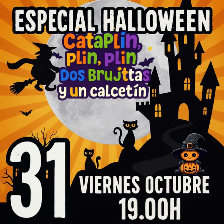 Este 31 de octubre prepárate para un Halloween lleno de risas con Cataplín, plin, plin, dos brujitas y un calcetín. Una comedia mágica en la que la bruja Cara Cortá lo dará todo para hacer reír a pequeños, mayores y a toda la tropa. Entre pócimas, escobas y piruletas, vivirás una velada de teatro familiar en la que la diversión no tendrá límites. Da igual la edad: todos están invitados a disfrutar de esta experiencia única en Madrid.