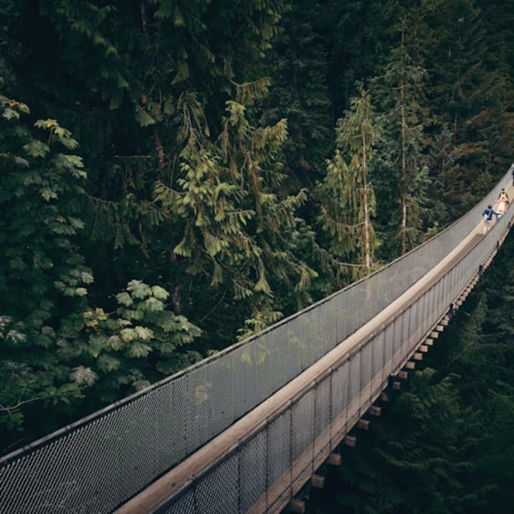 ✔️ Walk across the Capilano Suspension Bridge, 230 ft. above the river.