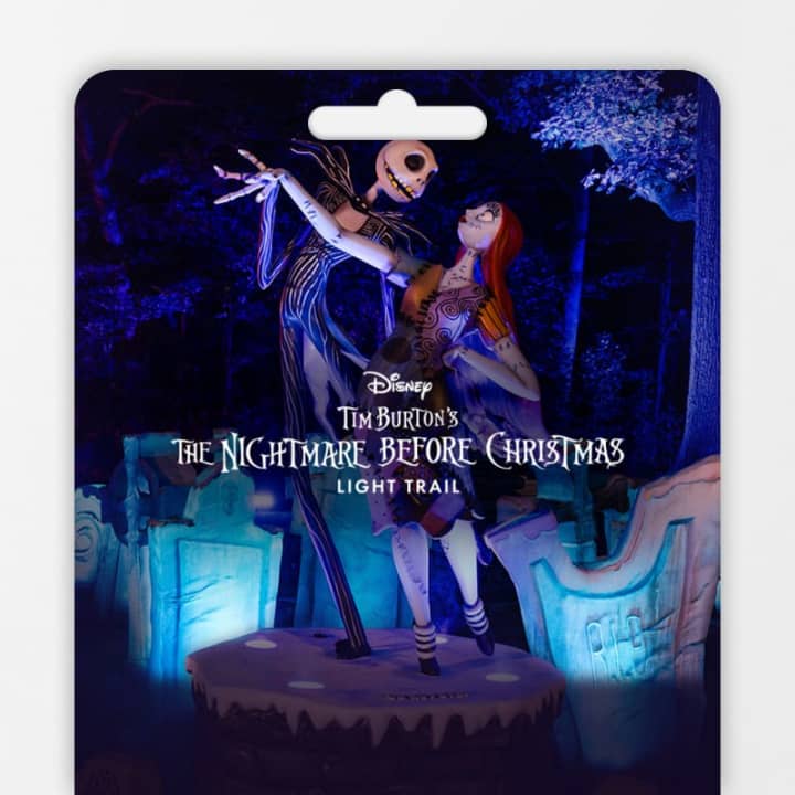 🎁 Official gift card for Disney Tim Burton’s The Nightmare Before Christmas Light Trail, an immersive light trail that brings Jack Skellington’s world to life with dazzling lights, music, and all-new scenes in a breathtaking outdoor setting!