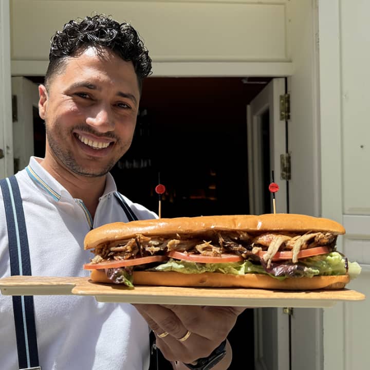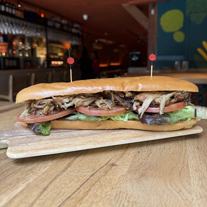 🥖 Un bocata cubano XXL con pan extra suave, salsa secreta, tomate, lechuga y cerdo asado al estilo cubano durante 8 horas.